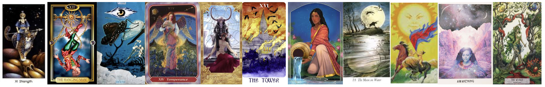 Tarot cards are an ancient form of self-development, insight and divination based upon the representative imagery we have created as a collective throughout human history. Using these images, your unconscious self lays out your "story" in pictures. My job as the reader is to tell you the story you are presenting to yourself.